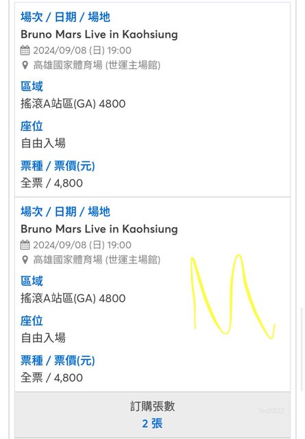 標題[售票] Bruno Mars live in Kaohsiung 9/7 & 9/8