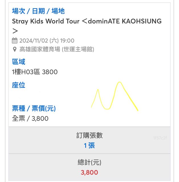 標題[售票] Stray Kids World Tour 11/2 #3800*2