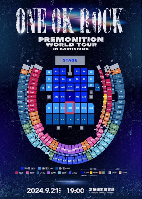 標題[售票] 9/21 ONE OK ROCK 降售B11票一張