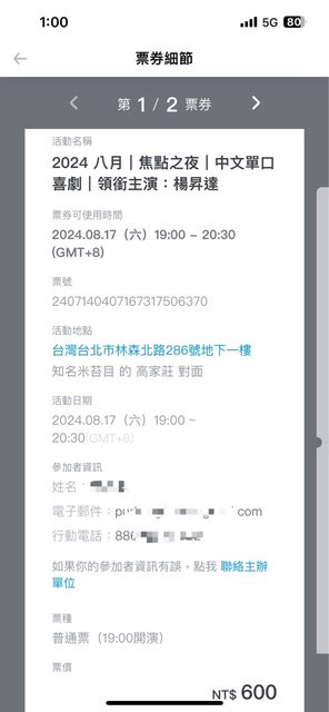 標題[售票] 8/17(六)中文單口喜劇:楊昇達