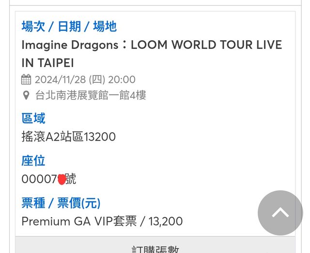 標題[售票] Imagine Dragons Premium 13200 80號內
