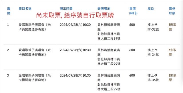 備註:家裡臨時有事無法前往,尚未取票,提供序號自行取票唷