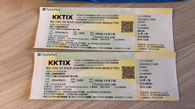 標題[售票] One Ok Rock演唱會 特B5連號 *2