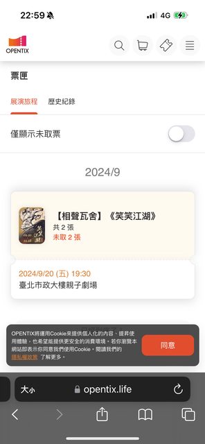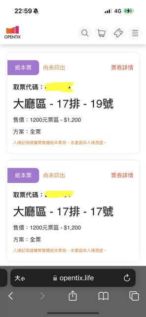 備註:朋友代售臨時沒辦法看QQ票券未取,提供序號後可以至兩廳院或是opentix取票點取票