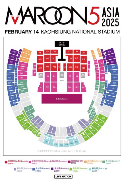 節目:Maroon 5 Asia 2025 – Kaohsiung