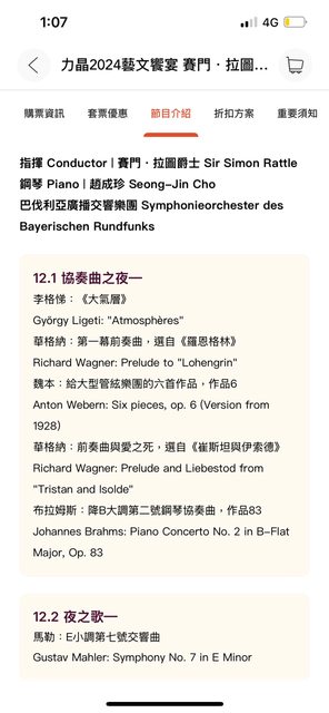 備註:12/01號為協奏曲,獨奏家是趙成珍,因人不在台灣無法去聽,只能割愛給想要的