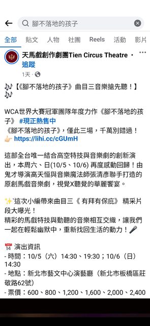 標題[售票] 腳不落地的孩子 馬戲音樂劇 降售