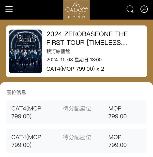 標題[售票] ZB1澳門站