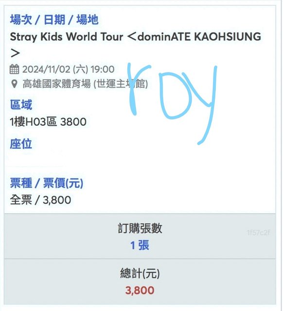 標題[售票] 11/2 Stray Kids H03 G16 2800 降售