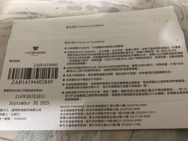 期限:其中6張期限為114年8月底,其中10張期限為114年9月底,皆逾期加價30元可繼續