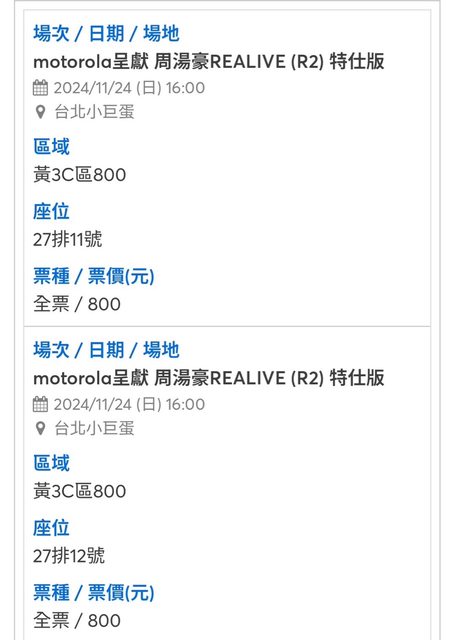 標題[售票] 11/24 周湯豪