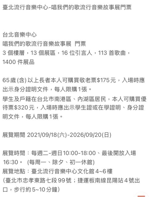 標題[售票] 臺北流行音樂中心-唱我們的歌流行音樂故