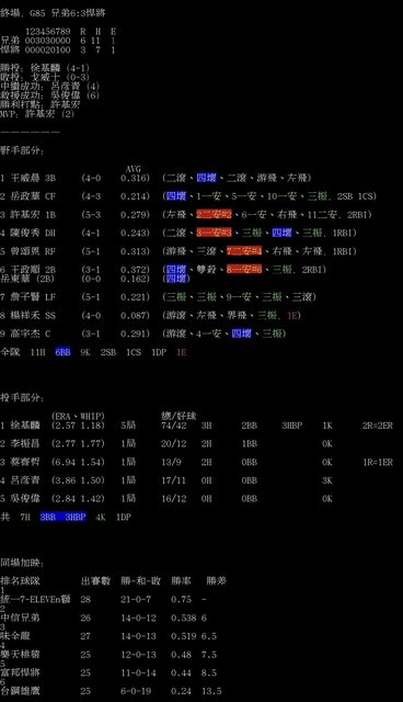 標題[情報] G85 兄弟6:3悍將 全場數據box