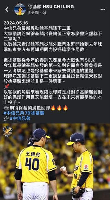 推 hunkin: 應該是臨時的調動 二軍今天原本是余先發 05/16 23:43