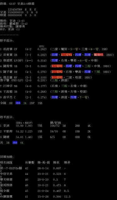 標題[情報] G137 兄弟5:0桃猿 全場數據box