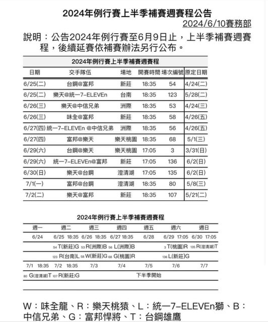 標題[情報] 補賽賽程公告