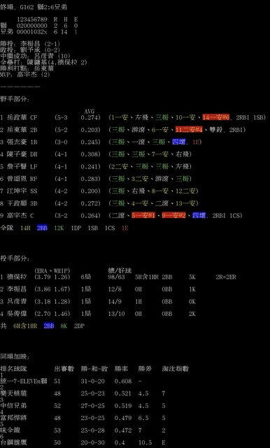 終場,G162 獅2:6兄弟