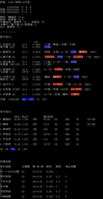 標題[情報] G169 悍將2:9兄弟 全場數據box
