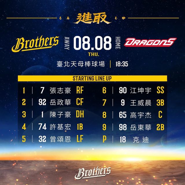 推 i19940802: 志豪太猛啦 又一隻首局首打席首球 08/08 18:36