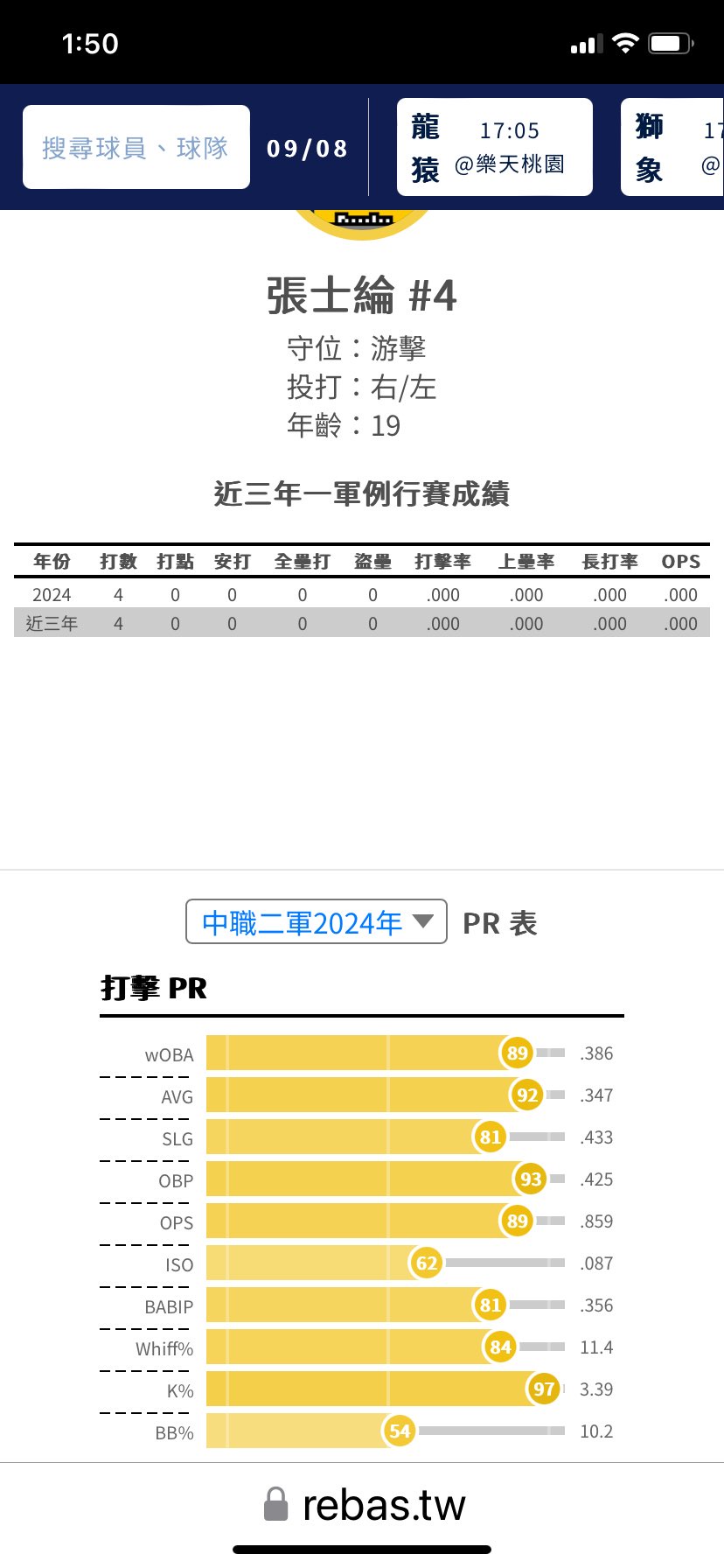 → HODOG53: 總版有一位網友有整理24歲以下二軍的OPS+ 09/08 14:00
