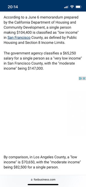 加州今年中公布:舊金山郡個人年收入低於$104K鎂(約$3M臺)為低收入、低於$65K鎂為極
