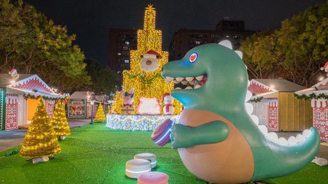 市民廣場「耶誕甜蜜派對Sweet Xmas Party」燈區繽紛亮眼裝置除了「甜點星」耶誕樹外,