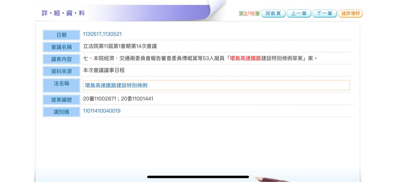 : 國道六號東延花蓮建設特別條例草案》。「花東快」法案的處理,依據5月16日、5月17日