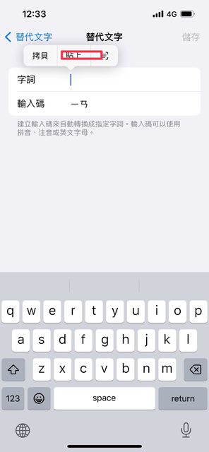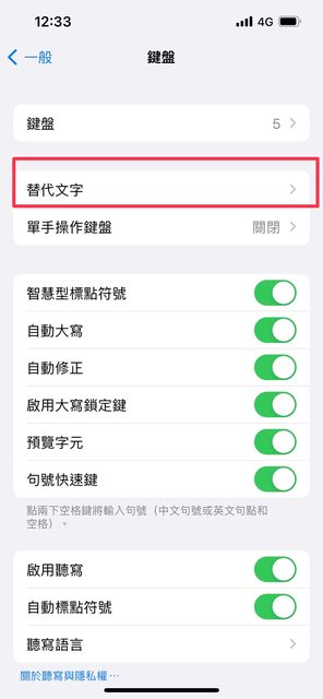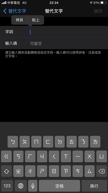 IOS板要透過鍵盤-替代文字 使用注音輸入法(用英文跑不出來)