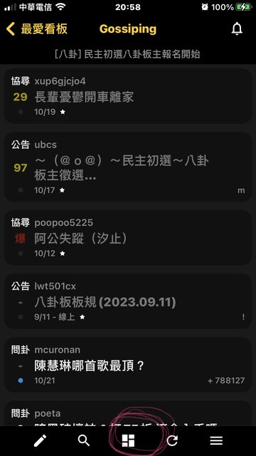 進入八卦板畫面並點選中下的工具列