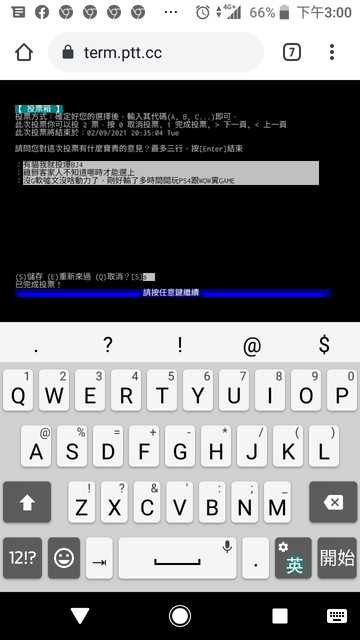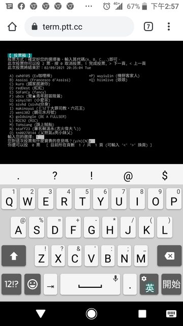 進板後小鍵盤按大V就會進投票畫面