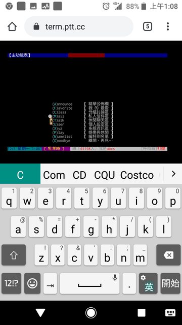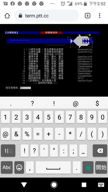 進來後用小鍵盤輸入15會到熱門看板
