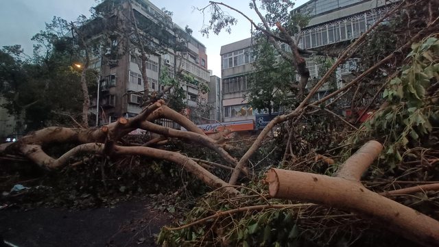 但繞到民生社區的時候卻發現斷樹特別多,而且很多是連根拔起的那種
