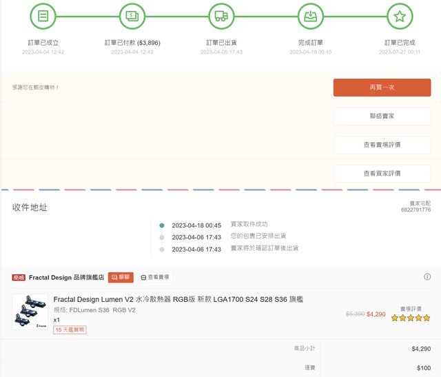 1. $ 3300 (自取-100,賣貨便+35(吧))