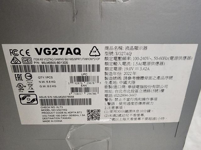 VG27AQ 保固至2025年