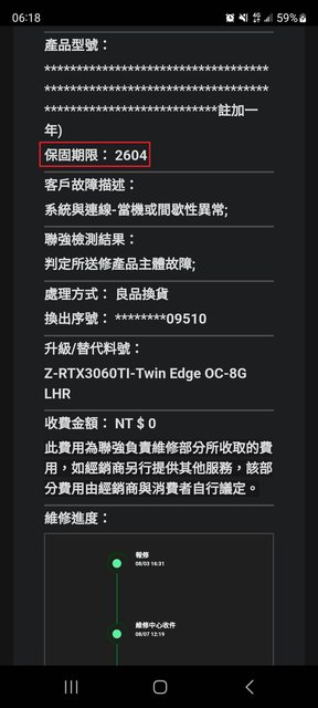 原卡故障,聯絡聯強免費到府收送維修,最後免費更換良品很新如圖,保固沿用舊卡至2026年4月。