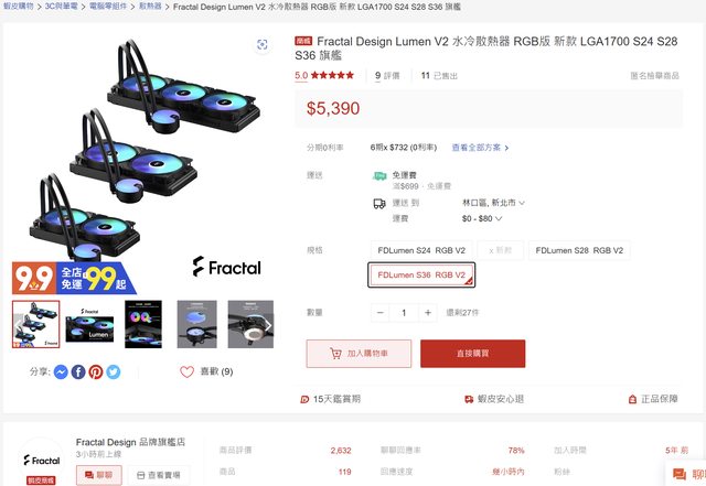 標題[賣/全國/皆可] FD Lumen S36V2 360水冷散熱器