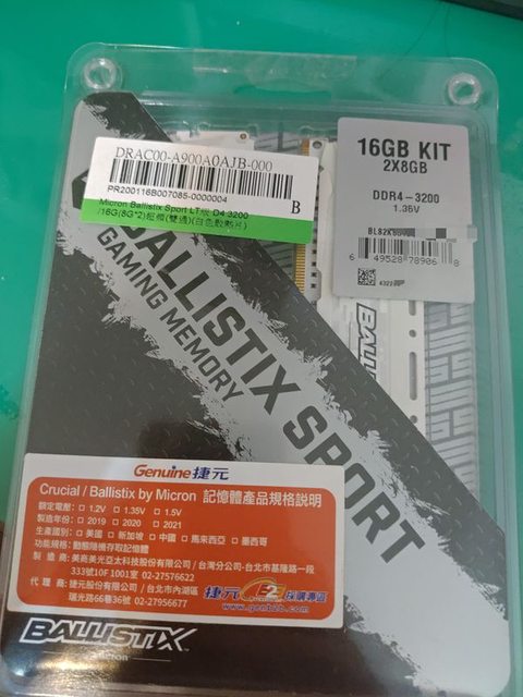 標題[賣/雙北/皆可] 美光Ballistix DDR4-3200 8g*2