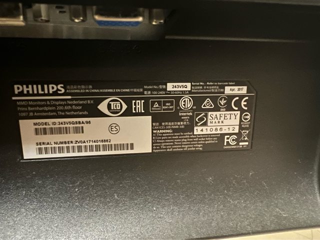 4. 【Philips 飛利浦】243V5QHABA 24型 MVA 廣視角電腦螢幕 二手 螢幕(2017購入)