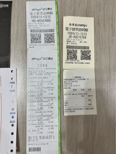 主機和零件是2020年11月22號於高雄建國欣亞購買
