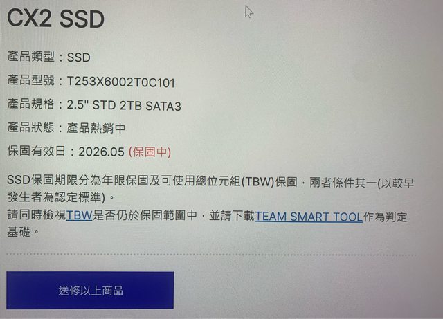 ◎硬體型號: 十銓CX2 2TB SSD