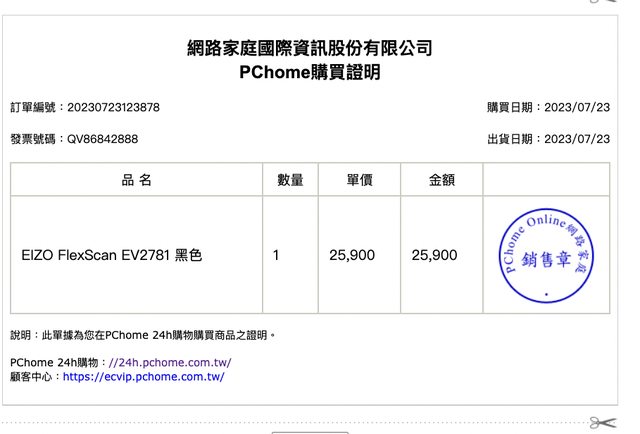 ◎硬體型號: EIZO FlexScan EV2781 黑色