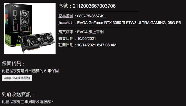 1.單獨購買,購買日期10/5/2021,有獨立發票可給,平常日常使用無挖礦無傷無碰撞,