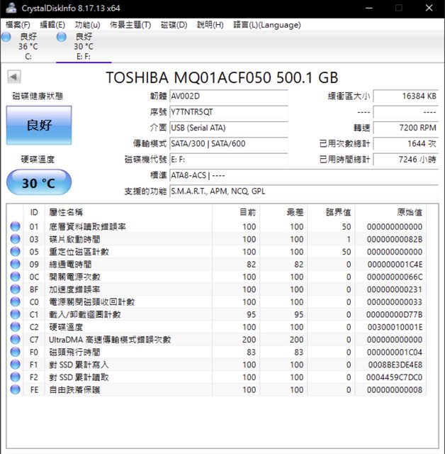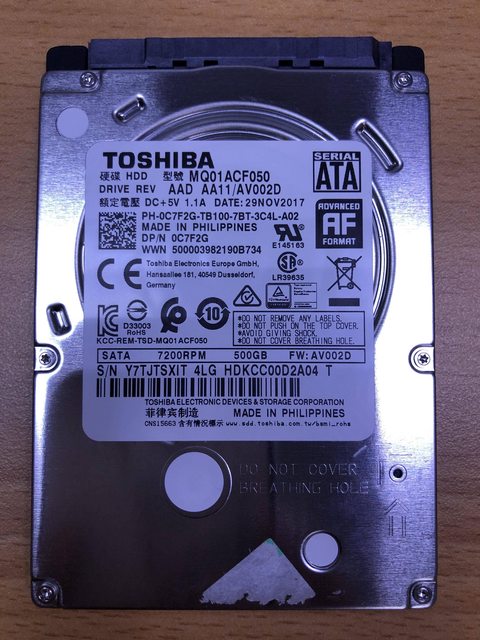 ◎硬體型號: Toshiba MQ01ACF050 500GB 2.5吋 7200轉 硬碟 共有8顆可售