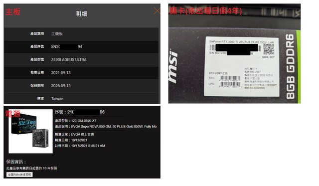 MB : Z490I AORUS ULTRA 保固到2026-09