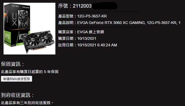 ◎硬體型號: EVGA RTX 3060 XC GAMING ◎欲售價格: 賣貨便: 6100 + 賣貨便運費 士林自取價: 6000 ◎品樣狀況: 2021/10/13 官網購入, 5年保固 已註冊 發票盒子都有 無挖礦, 平時降壓使用 此牌風扇通病:停轉->剛啟動時有異音, 介意的話用軟體定速 ◎佐證資料: