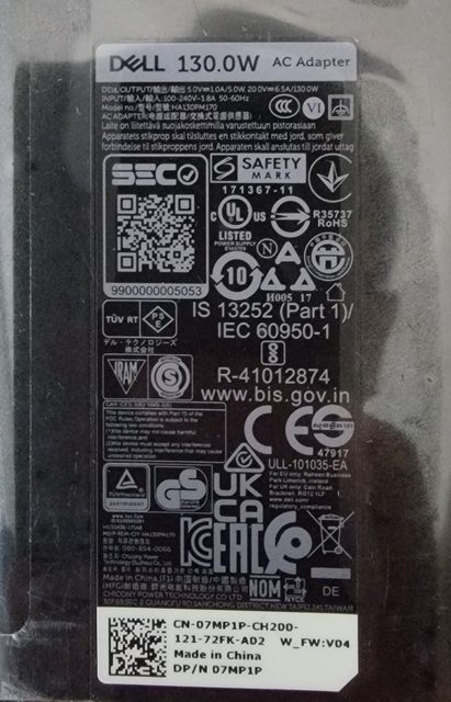 ◎硬體型號: Dell 130W Type-C 電源供應器