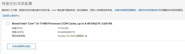 保固依CPU上批號及序號經官網查詢到2024/10/23