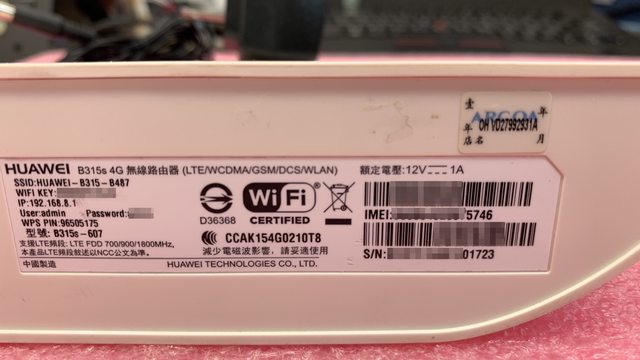 ◎硬體型號: 華為 4G分享器 B315s-607