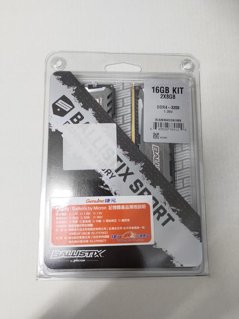標題[賣/全國/寄送] 美光Ballistix DDR4-3200 8G*2