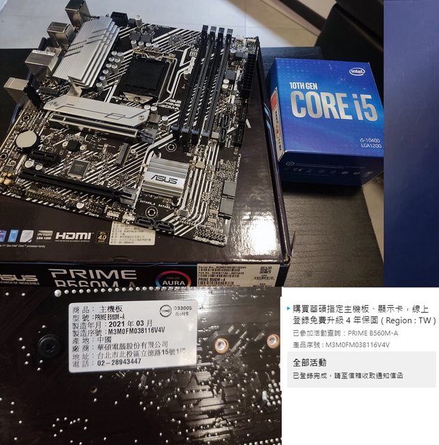標題[賣/全國/皆可] INTEL i5-10400 +ASUS B560M-A